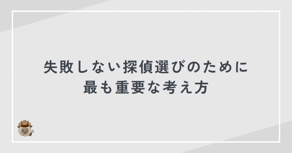 探偵選びでは、価格よりも信頼性と証拠力を重視することが最も重要です。