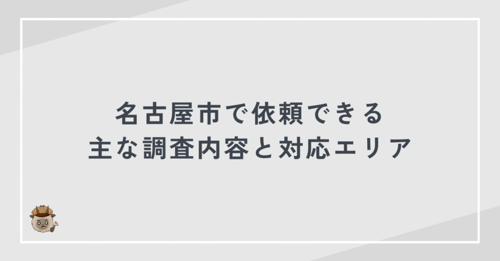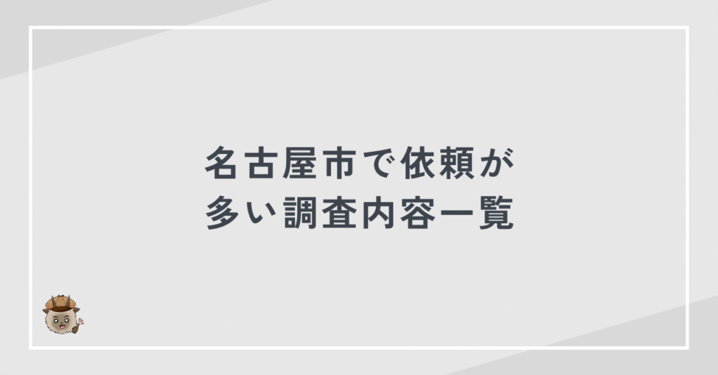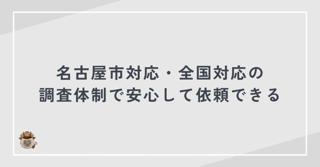 名古屋市対応・全国対応の調査体制で安心して依頼できる