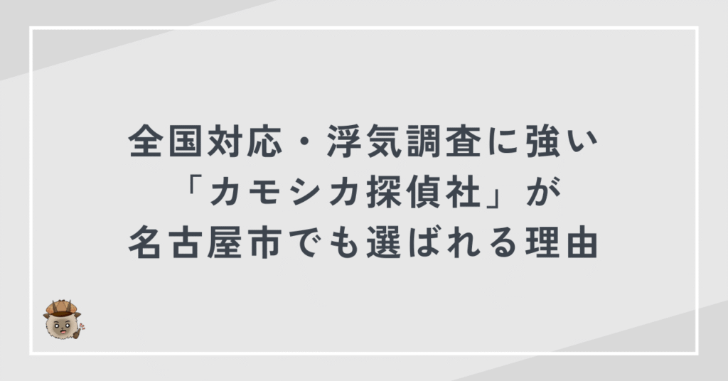 カモシカ探偵社は、名古屋市を含む全国対応の調査体制を構築しています。