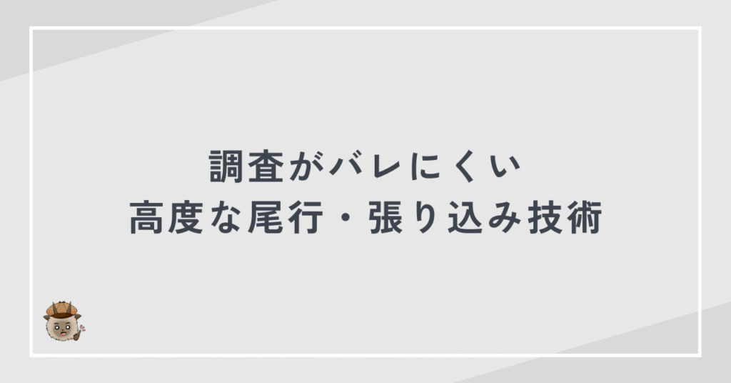 複数名体制、車両の入れ替え、調査員の交代、高性能機材の使用などを徹底すれば、警戒されるリスクは大きく下がります。