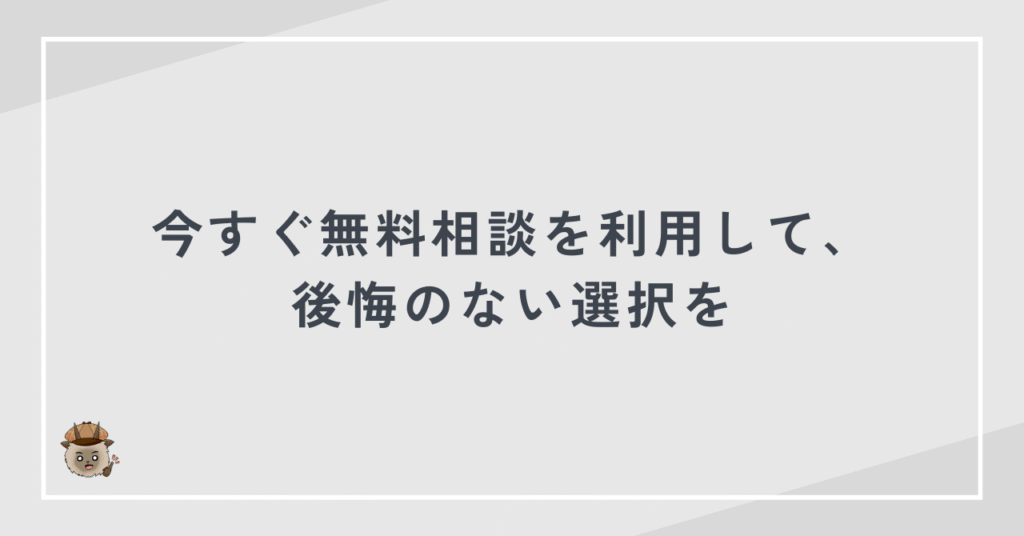 今すぐ無料相談を利用して、後悔のない選択を
