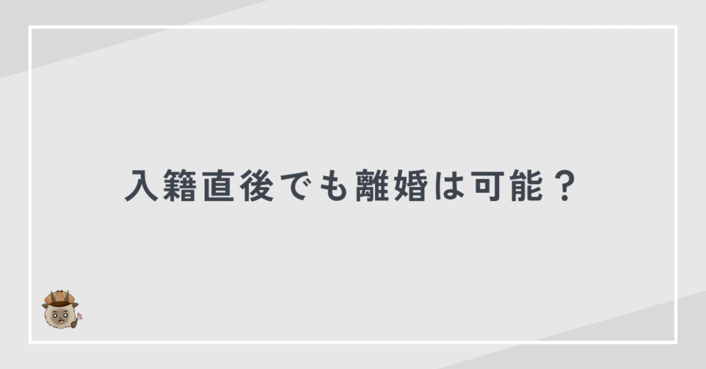 入籍直後であっても、離婚は可能です。日本の法律では、婚姻期間の長さによって離婚の可否が左右されることはありません。