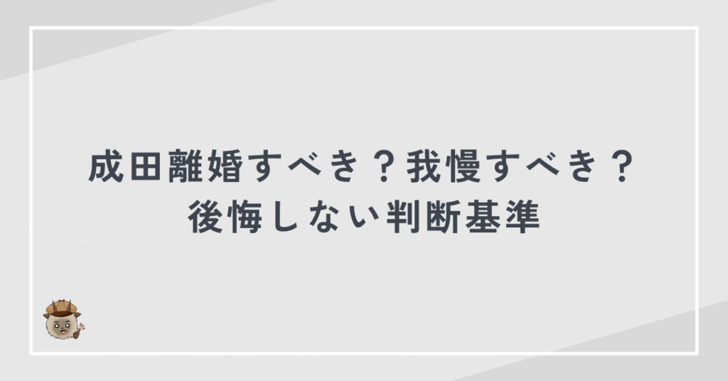 成田離婚すべき?我慢すべき?後悔しない判断基準