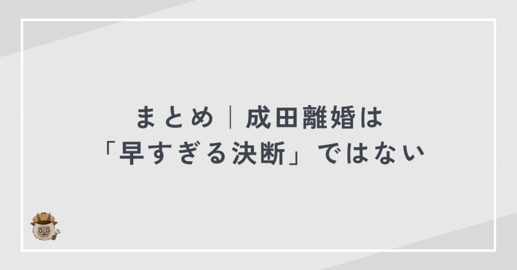 成田離婚は早すぎる決断ではありません。正しい順序で考えることが、納得できる選択につながります。