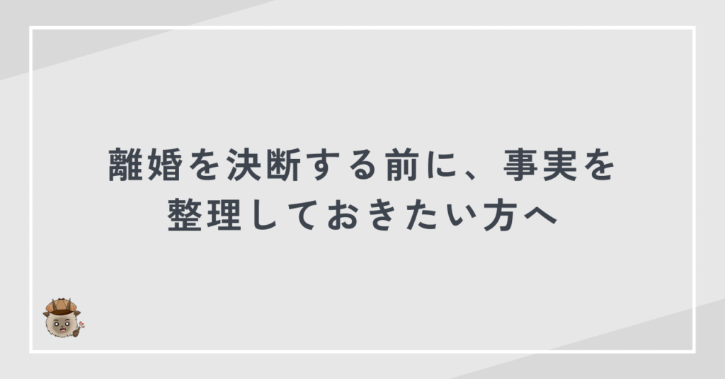 離婚を決断する前に、事実を整理しておきたい方へ