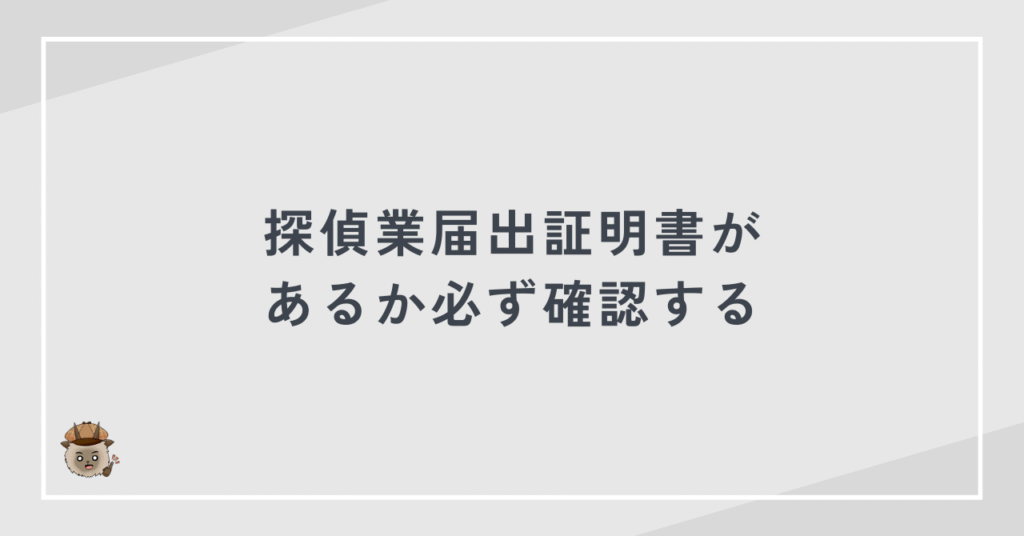 - 探偵業届出証明書と浮気調査の実績を確認する