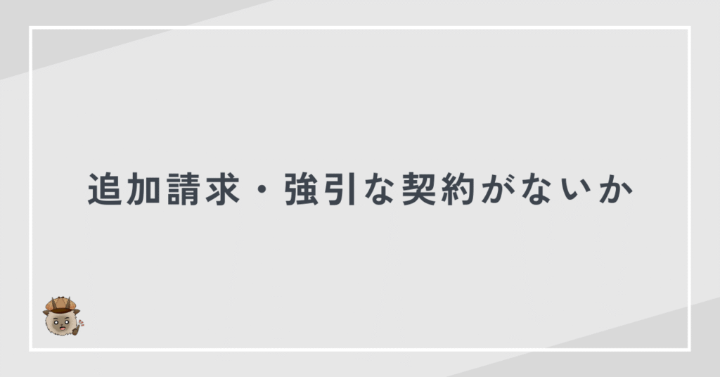 - 料金体系と追加費用の条件を必ず書面で確認する