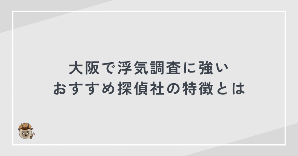 大阪で浮気調査に強いおすすめ探偵社の特徴とは