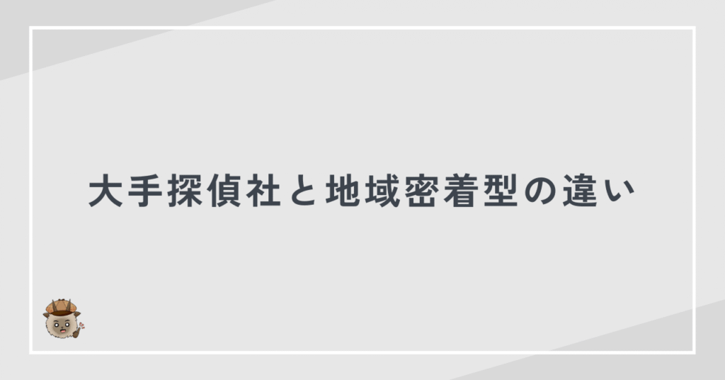 | 項目 | 大手探偵社 | 地域密着型探偵社 |