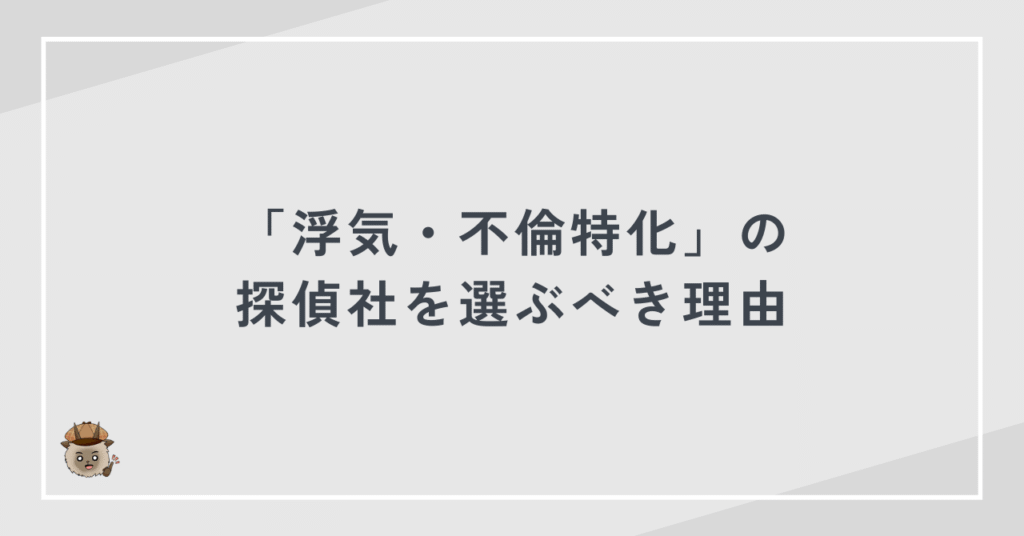 「浮気・不倫特化」の探偵社を選ぶべき理由