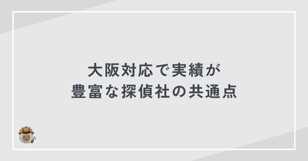 大阪で実績が豊富な探偵社には、いくつかの共通点があります。共通点を理解すると、広告に惑わされずに優良業者を見極めやすくなります。