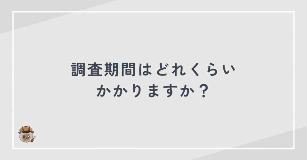 調査期間はケースごとに大きく異なります。結論として、最短一日から、長い場合は一か月以上かかるケースもあります。
