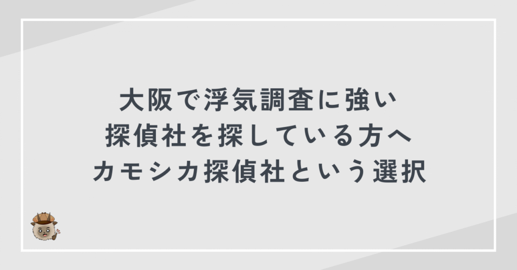 大阪で浮気調査に強い探偵社を探している方へ|カモシカ探偵社という選択
