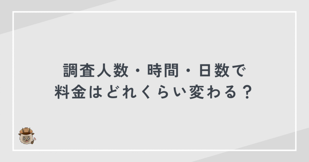 | 週末調査 | 土日2日・各5時間・調査員2名 | 約20万円〜30万円 |