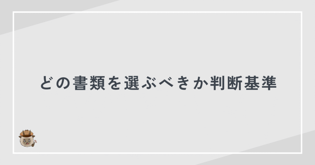 | 書類名 | 主な特徴 | 主な利用場面 |