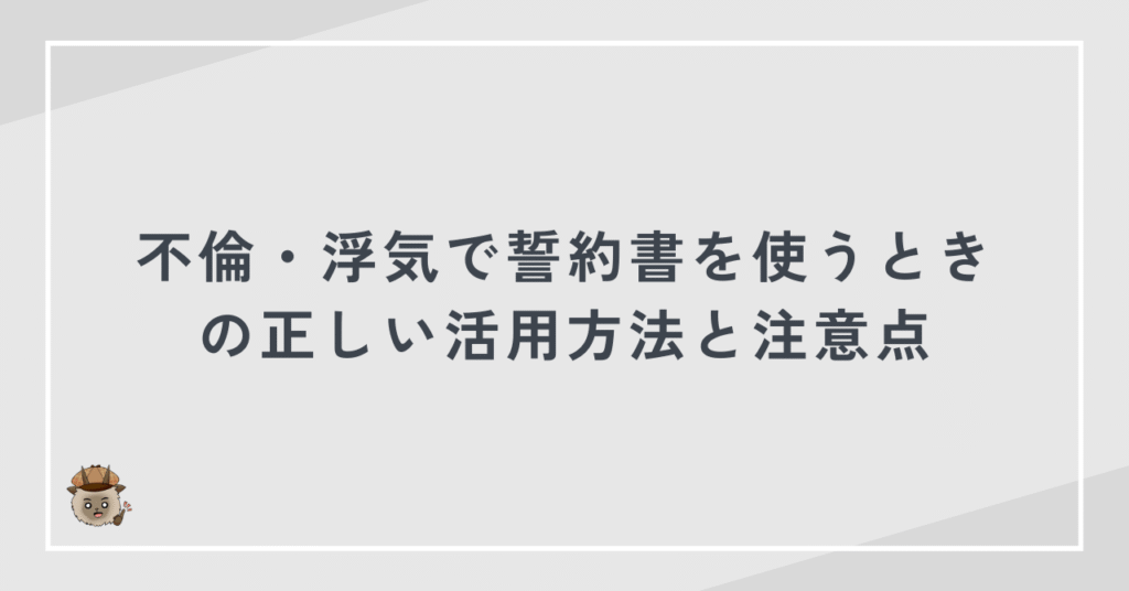 逆に、確実な証拠を押さえたうえで誓約書を作成すれば、再発防止も慰謝料請求も圧倒的に有利に進められます。