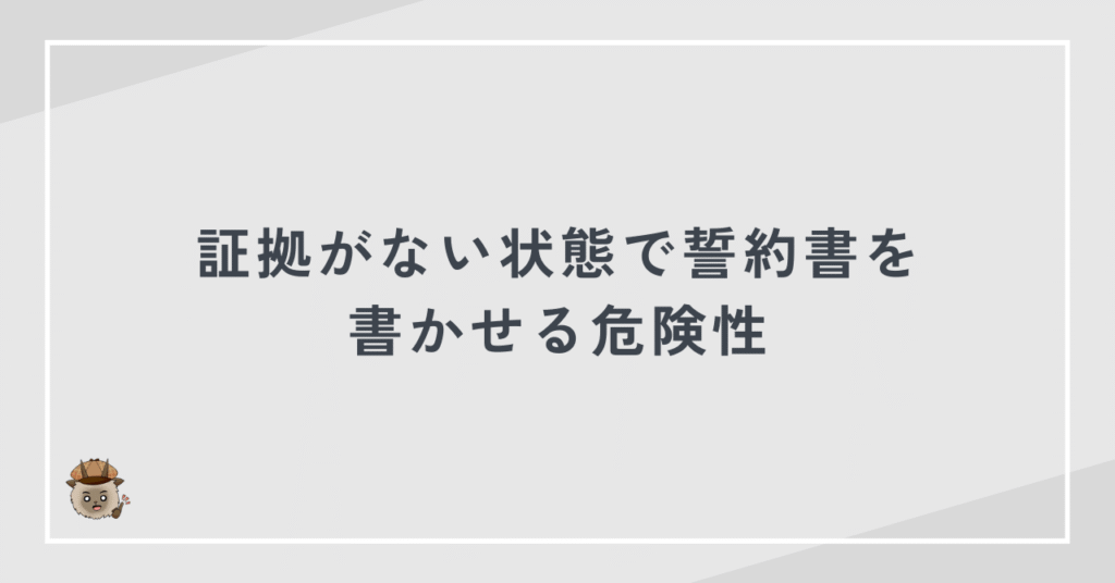 証拠がないまま誓約書を書かせてしまうと、後から無効を主張され、状況がさらに悪化する危険があります。