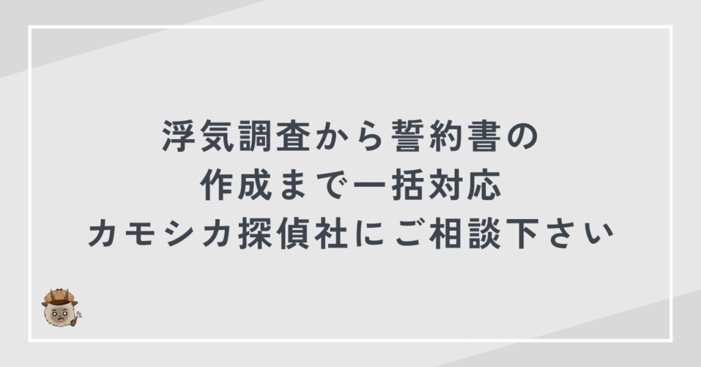 あなたの未来を守るために、証拠集めから誓約書作成まで、カモシカ探偵社が全力でサポートします。
