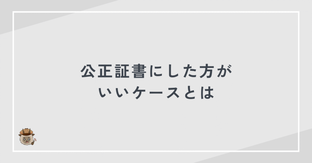 公正証書を検討した方がよい代表的なケースは次のとおりです。