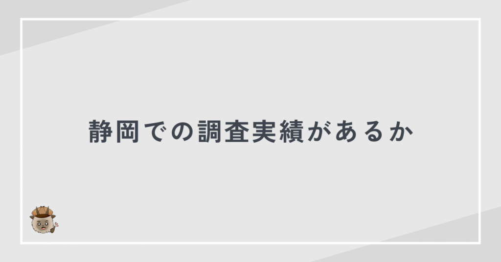 重要なのは拠点の場所ではなく、静岡での調査実績が明確に示されているかどうかです。