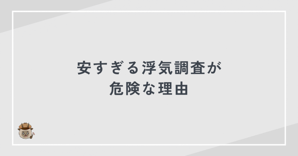 安さだけを基準に選ぶと、証拠の質や調査精度で後悔する可能性が高まります。